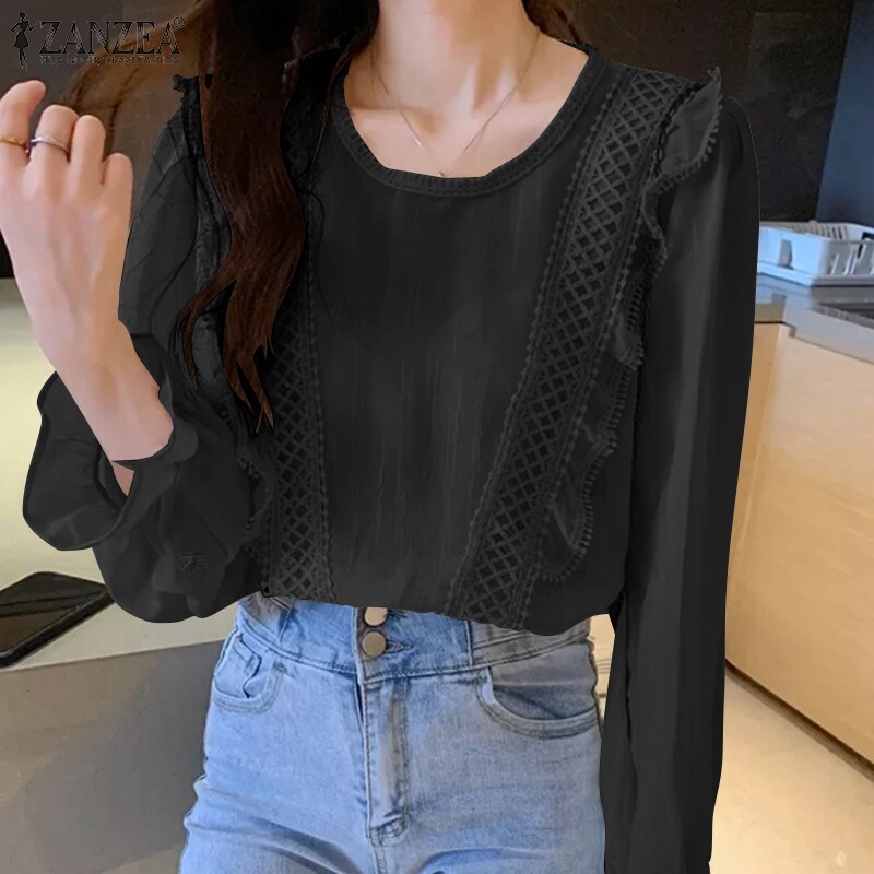 [Clearance Sale]ZANZEA Clearance Sale Womens Puff Long Sleeve Ruffles Shirt Office Cargo Loose Tops Blouse CLE