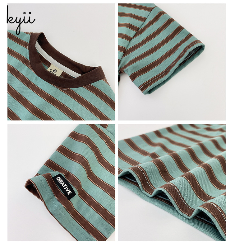 KYII stripe short sleeve Casual boys cotton summer loose shirt Korean Shirt kyb042