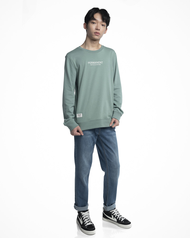 Regular Solid Coloured Long Sleeve Sweatshirt with Round Neck. Comes with Permanent Slogan at the front. Made of cotton.