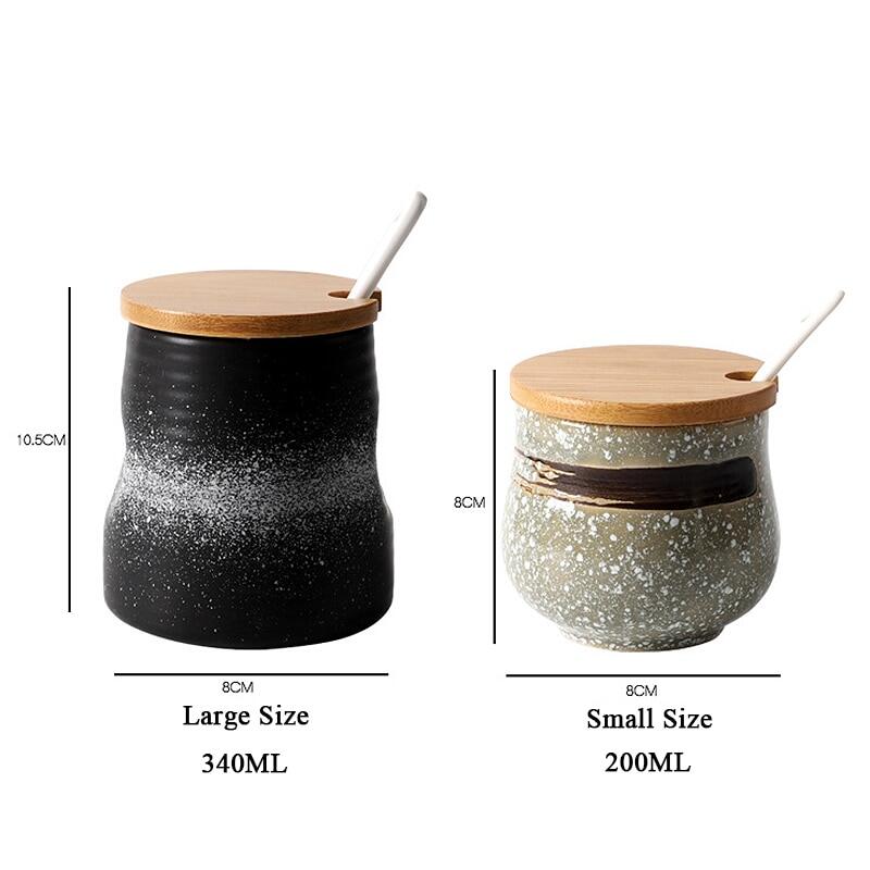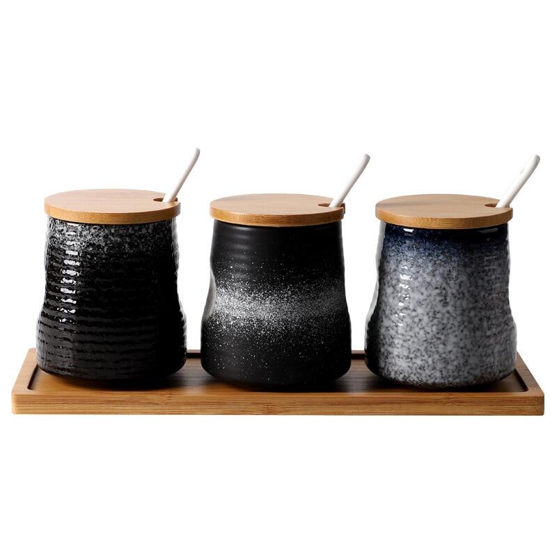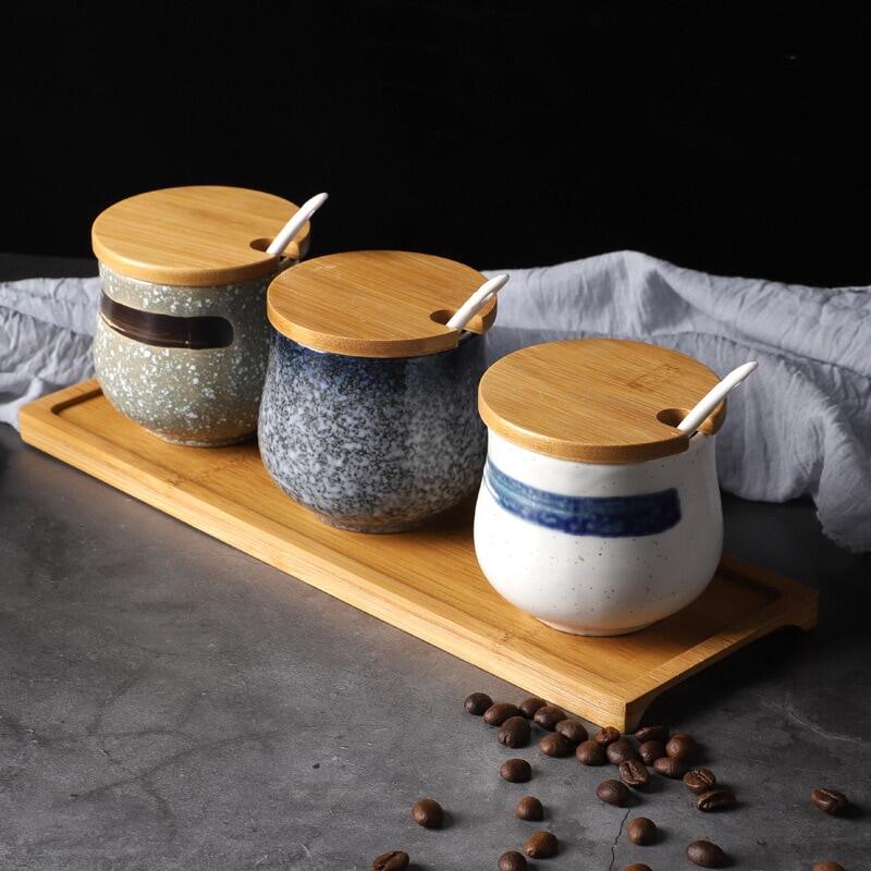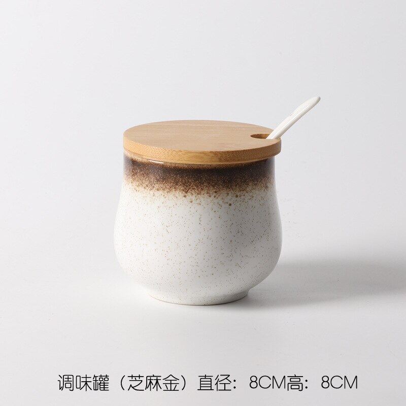 Creative Japanese-Style Ceramic Seasoning Jar Set Restaurant With Lid Spoon Salt Pepper MSG Jar Home Kitchen Seasoning Bottle